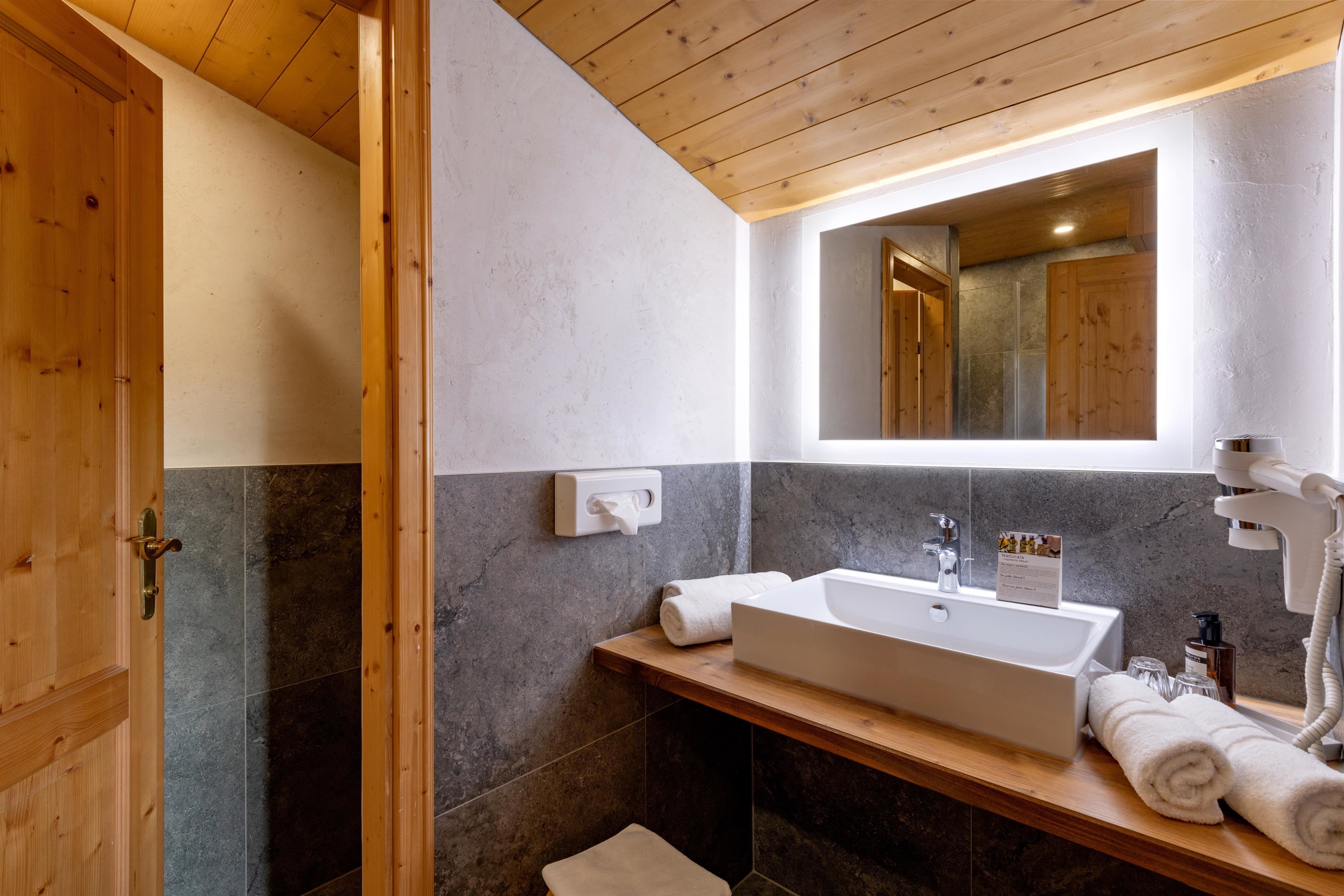 - Bäder mit Dusche und separatem WC, Föhn und Kosmetikspiegel, Duschgel/Shampoo „Naturals“