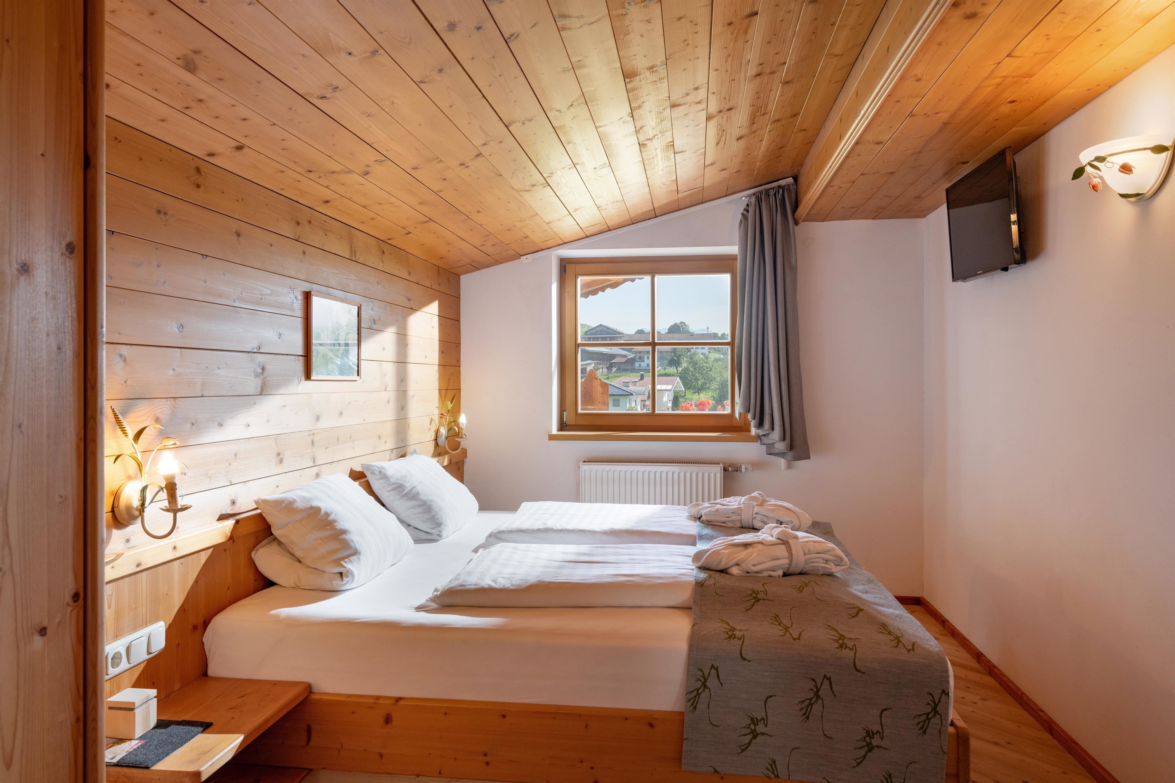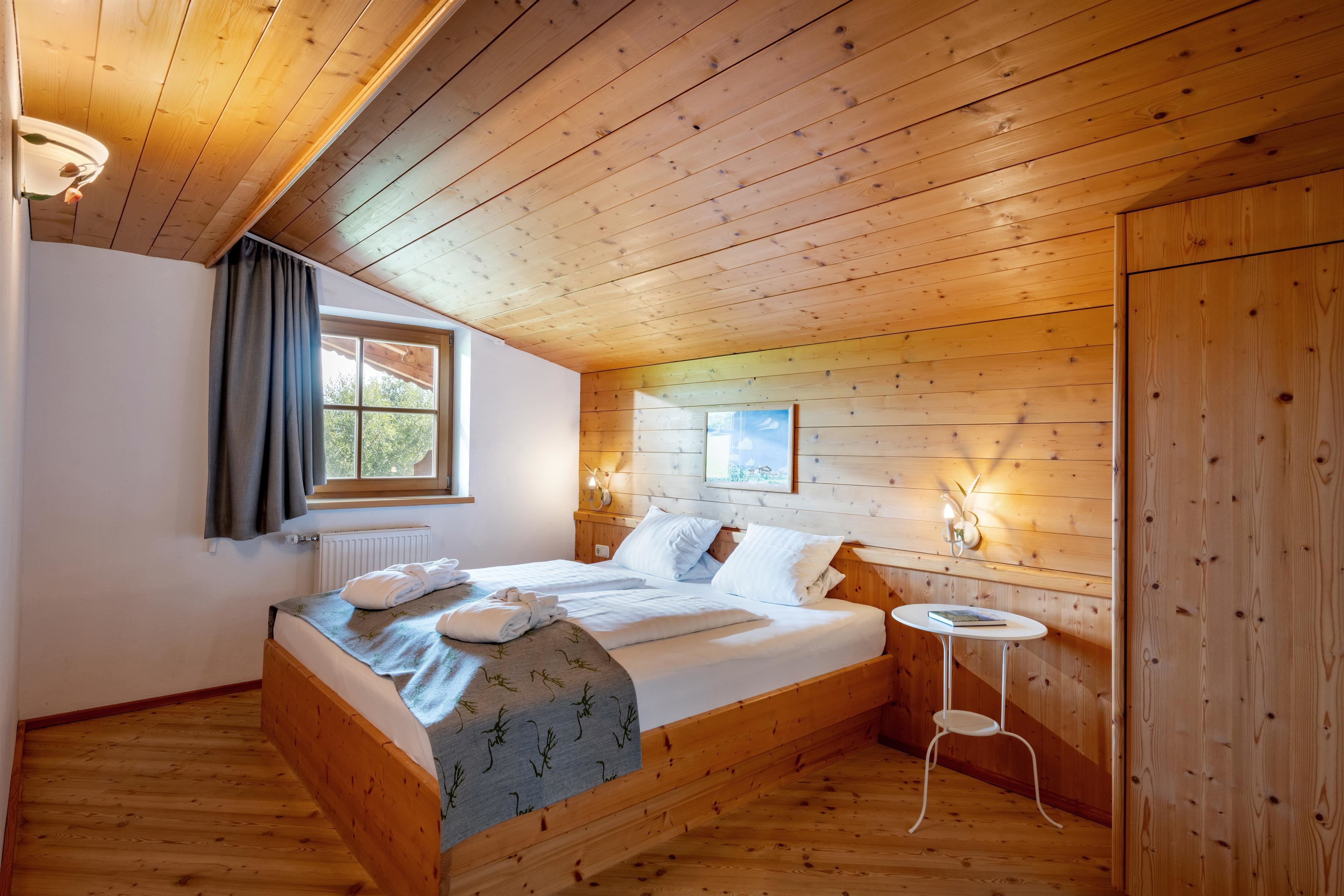 Unsere Doppelzimmer(ca. 25-30 m²) sind mit Natur- Holz- und Steinböden ausgestattet - für einen gemütlichen Urlaub, auch als Allergiker.